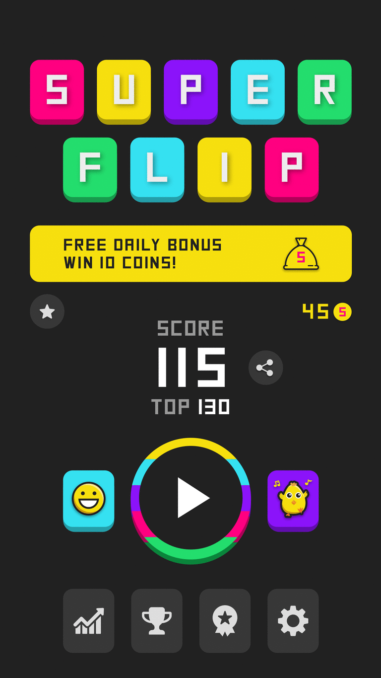 Super Flip is a fun and fast-paced arcade game where you have to match shapes and colors! Bundled with a lot of themes and a colorful style, it tests your fast fingers skills. Suitable for any ages, Super Flip is a perfect brain workout and a very addictive game!